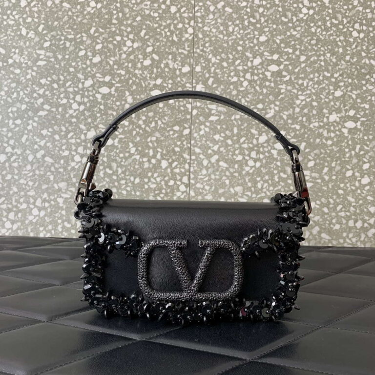 Valentino Garavani Locò Small Embroidered Shoulder Bag Black