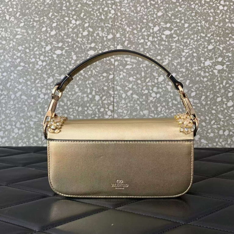 Valentino Garavani Locò Small Embroidered Shoulder Bag Gold