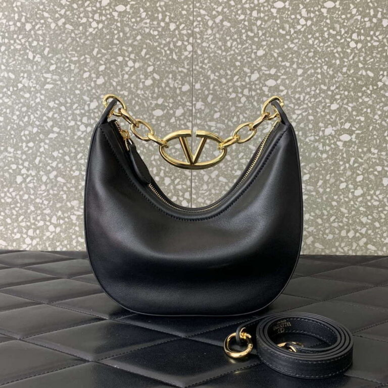 Valentino 6W2P0AK3SNP_I16 Vlogo Signature Mini Hobo Bag In Grainy Calfskin Black