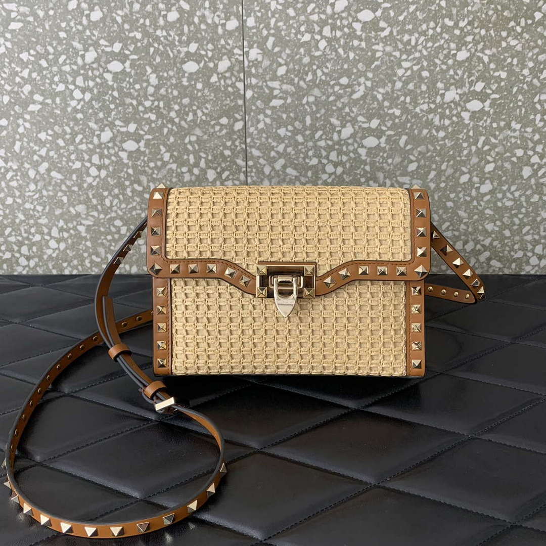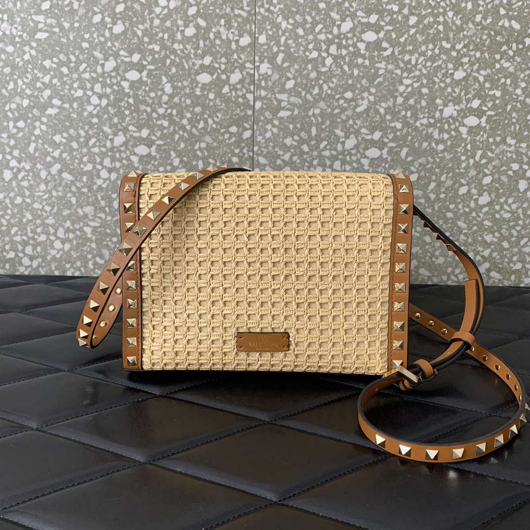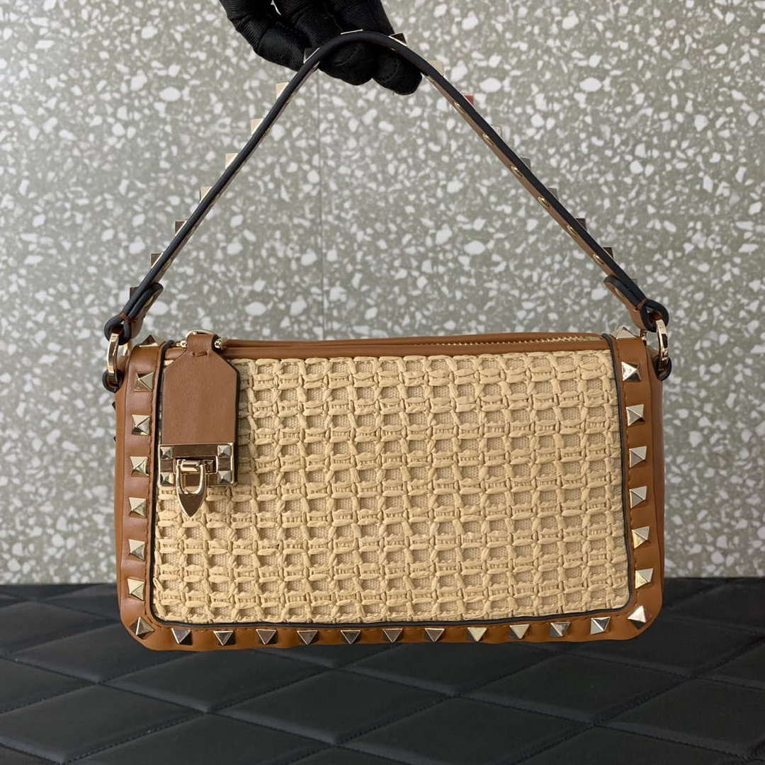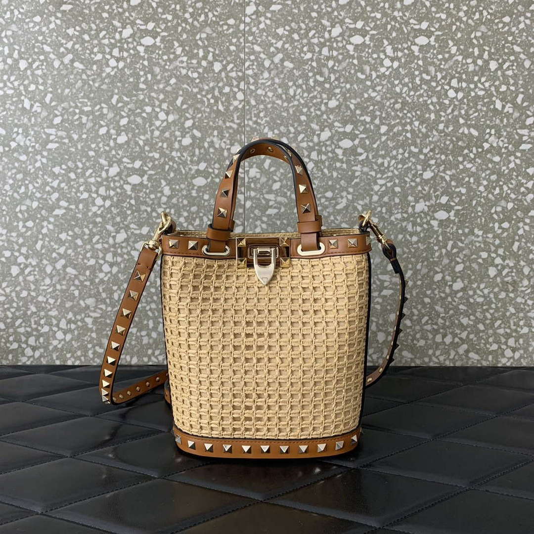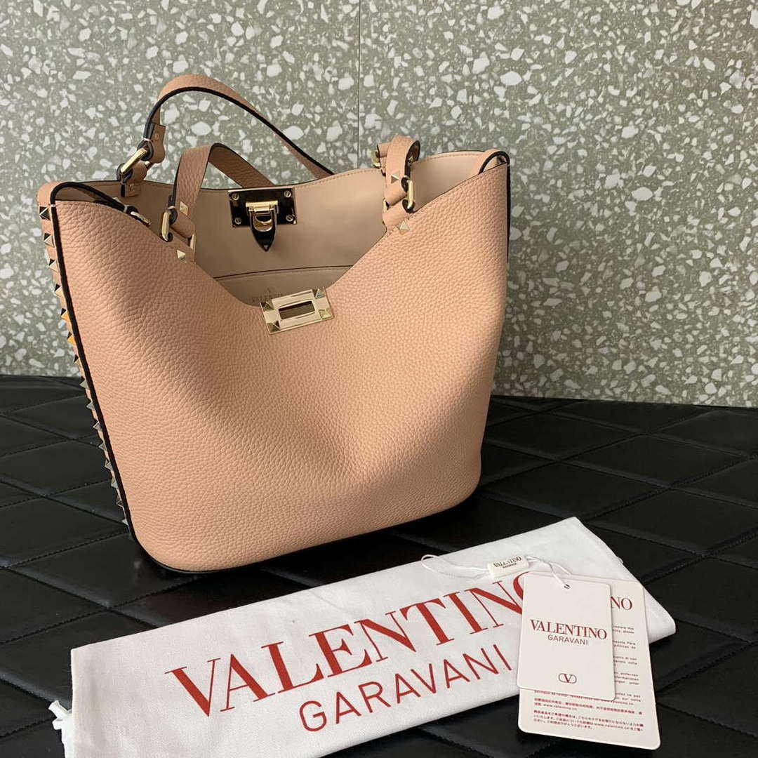 Valentino 0055 GARAVANI Rockstud Small Poudre Leather Tote Bag Pink