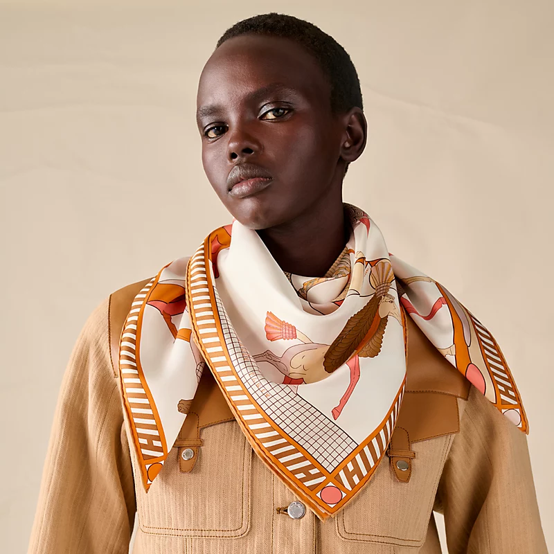 This iconic Hermès piece embodies the essence of powerful beauty and charismatic femininity. The 90 scarf symbolizes the boundless freedom of constantly renewed creation, unlimited emotion and the unique expression of a personal narrative waiting to be written.
