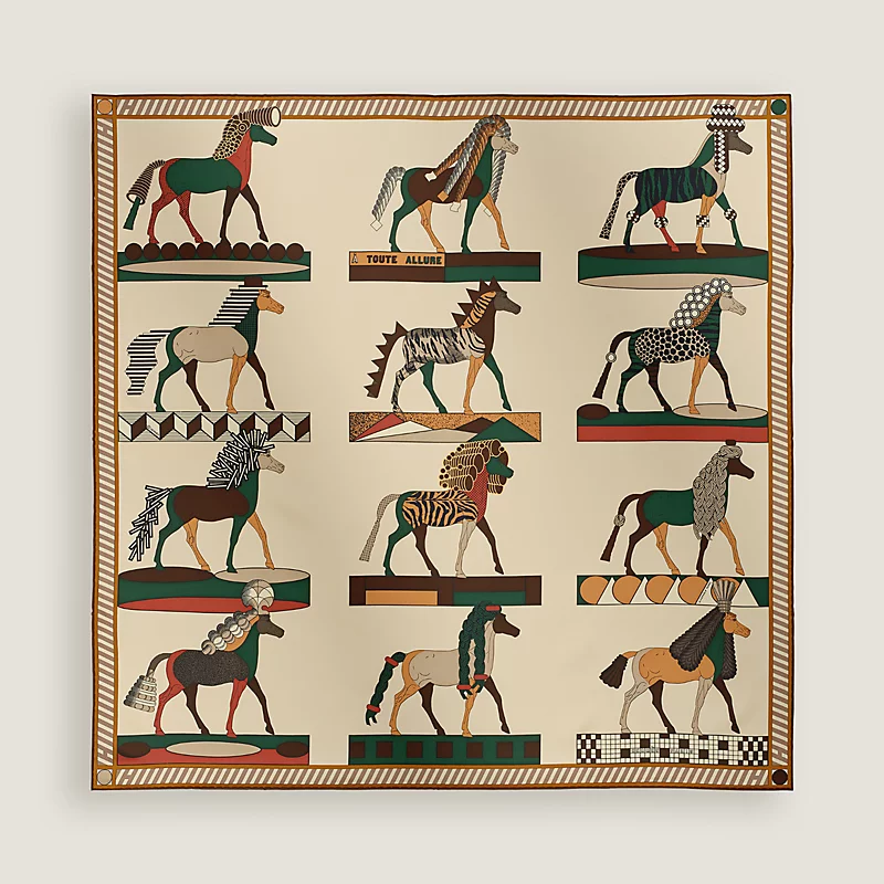 This iconic Hermès piece embodies the essence of powerful beauty and charismatic femininity. The 90 scarf symbolizes the boundless freedom of constantly renewed creation, unlimited emotion and the unique expression of a personal narrative waiting to be written.