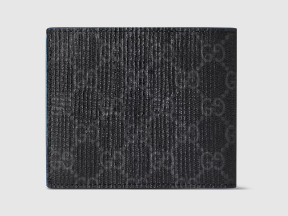 This bi-fold wallet is presented as part of the Pre-Fall 2025 collection. Crafted from GG Supreme, it reveals a contrasting leather interior and a ceramic-effect GG detail.
