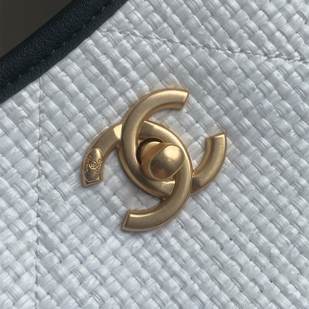 Braided Raffia, Calfskin & Gold-Tone Metal