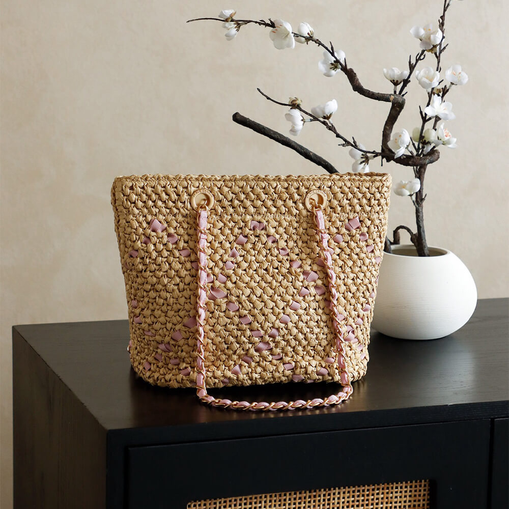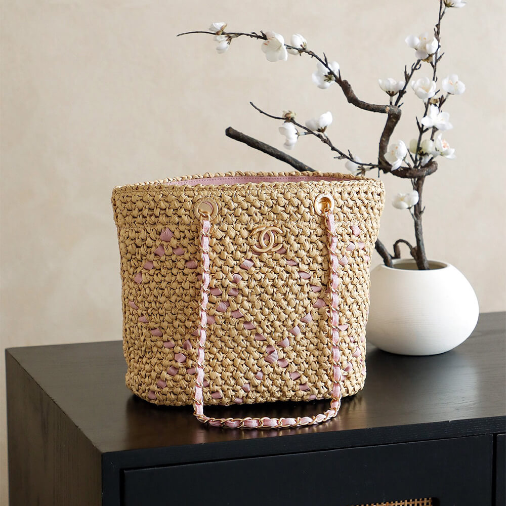 Braided Raffia, Cotton Grosgrain Ribbon & Gold-Tone metal