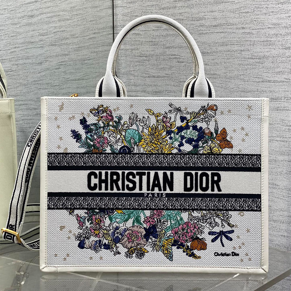 White Multicolor Dior Zodiac Flowers Embroidery and White Calfskin (36.5 x 28 x 16.5 cm)