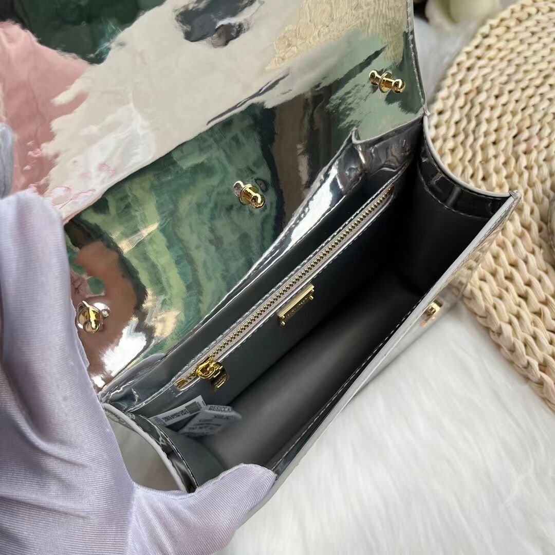 Dolce & Gabbana Patent leather Shoulder Bag G6551 silver
