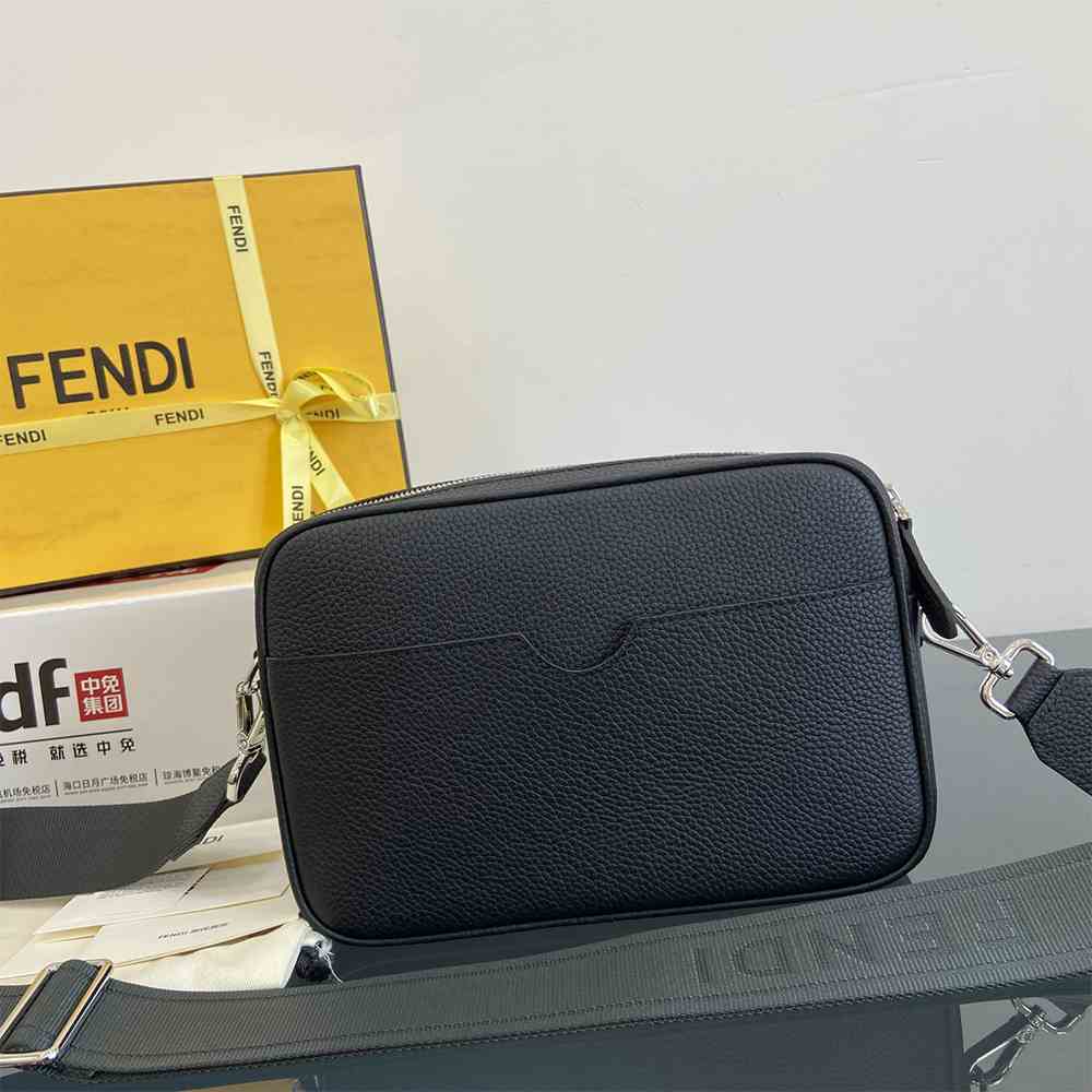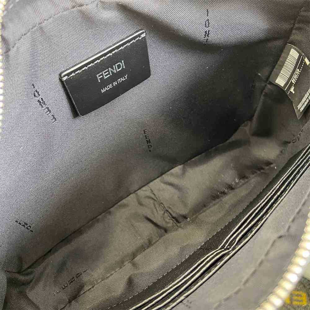 The tech fabric cross-body shoulder strap with Fendi lettering is adjustable and detachable.