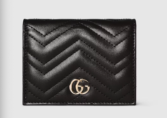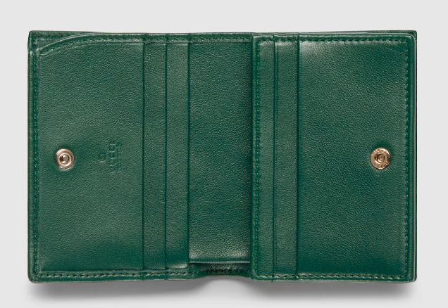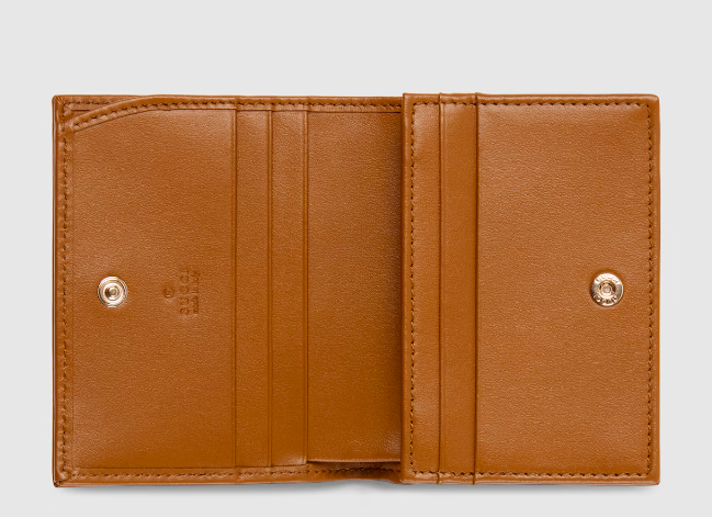 An Interlocking G with stirrup print embellishes small leathergoods for a festive touch. Here it appears across a bi-fold wallet crafted from soft GG Supreme.