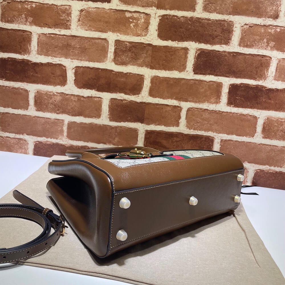 Beige and ebony GG Supreme canvas, a material with low environmental impact, with brown leather trim