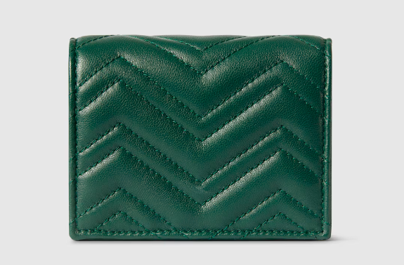 The GG Marmont introduces mini silhouettes in a fresh palette, such as this card case wallet in matelassé chevron leather, complete with the Double G hardware in a light gold-toned finish.
