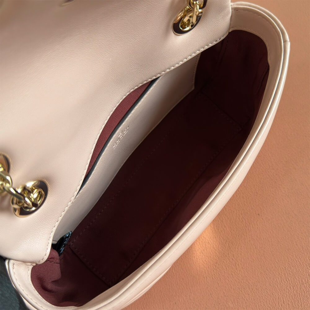 Pale pink matelassé chevron lambskin leather