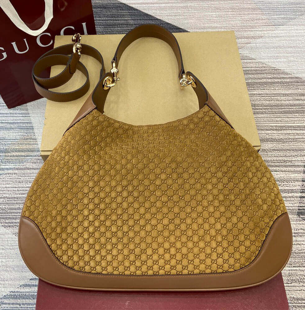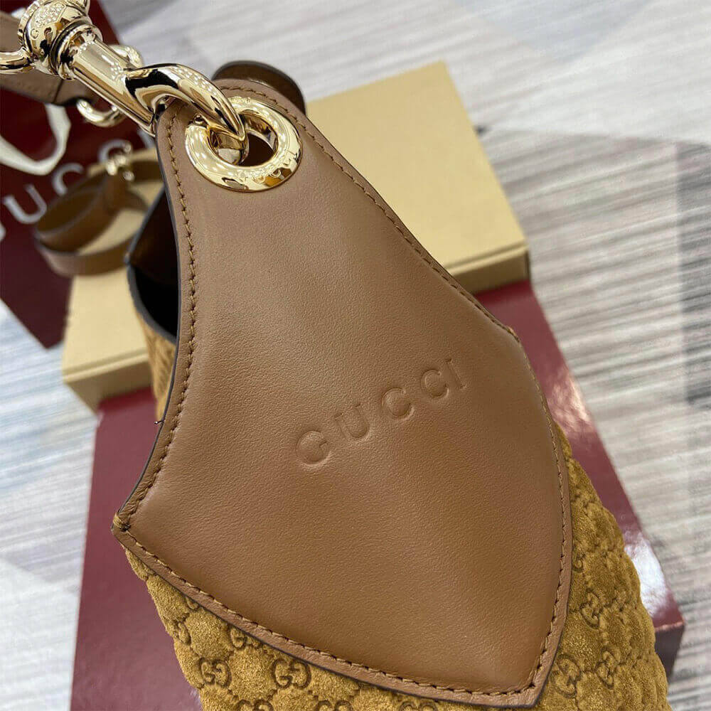 Brown micro GG embossed suede