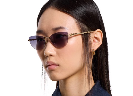 • Shiny gold-toned metal bamboo-shaped temples with engraved logo on endtips