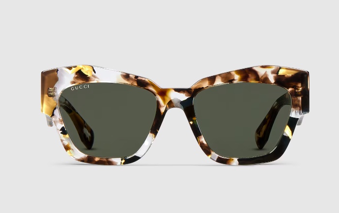 - Green and clear tortoiseshell acetate temples with Gucci logo