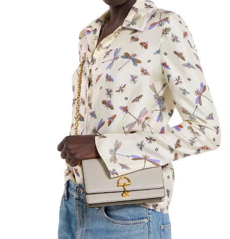 Gucci Half Horsebit offers a contemporary take on one of the House’s most emblematic codes, reimagining the signature hardware on supple leather. This wallet on a chain is stated in soft grainy leather and features a Half Horsebit detail in a light gold-toned finish.