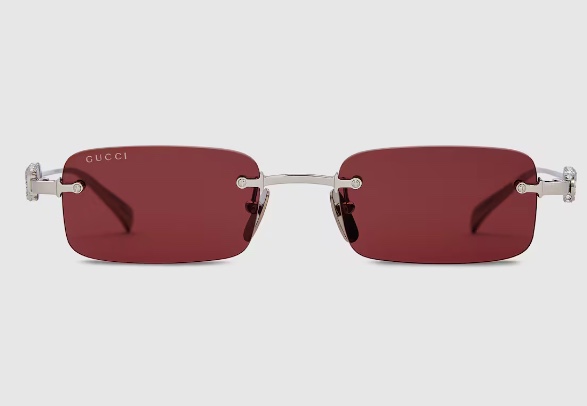 - Shiny silver-toned metal temples with cut-out Gucci logo and crystals
