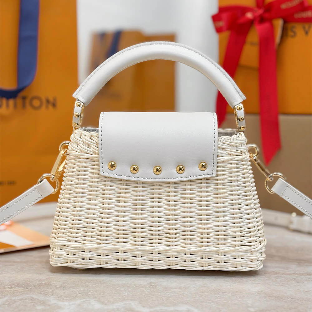 Fits: 6.1-inches smartphone, Capucines compact wallet, keys, lipstick
