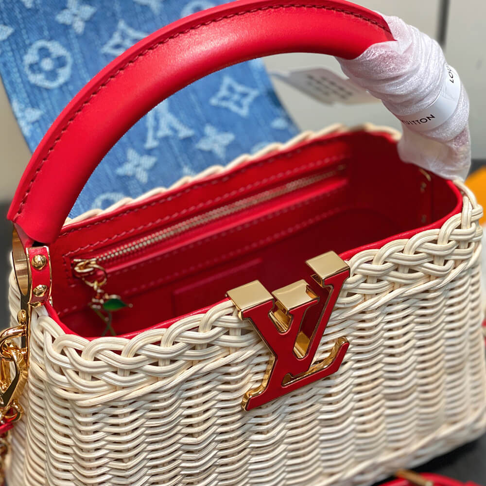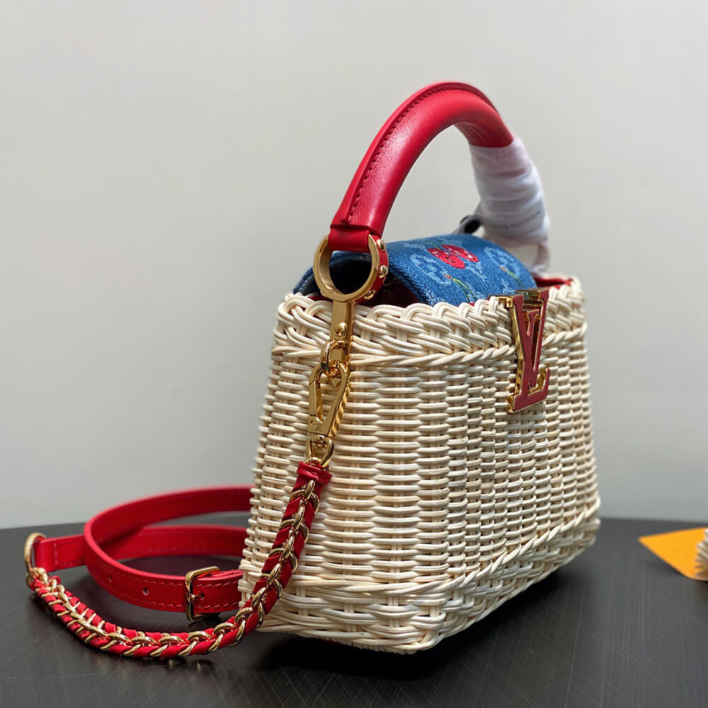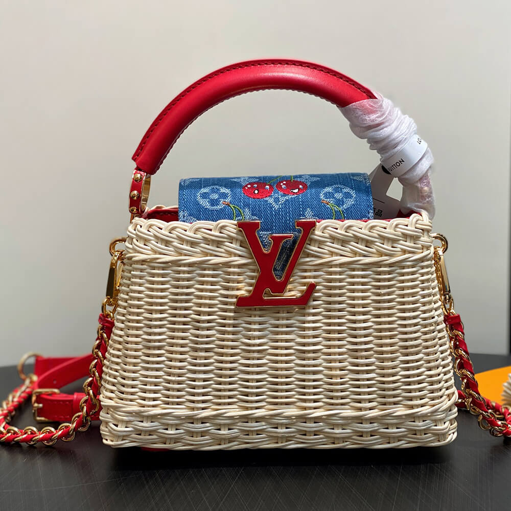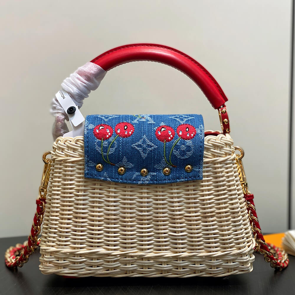 Rattan/Cowhide leather/Monogram cherry denim