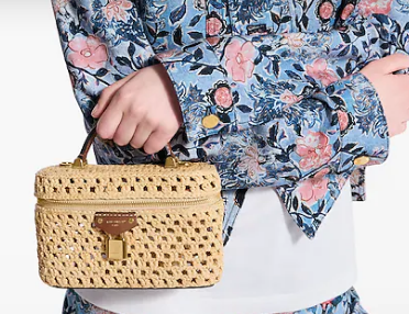 Ideal for alfresco events and vacations, the Vanity Chain pouch is updated as part of the Resort collection in seasonal raffia. Offered in a neutral, versatile colorway, the elegant design is trimmed with contrasting cowhide leather for a refined finish. The gold-toned hardware lends a sophisticated touch and includes a signature LV-engraved padlock.