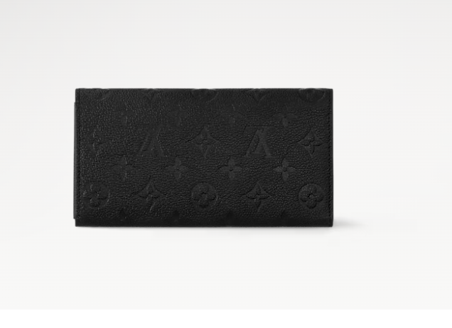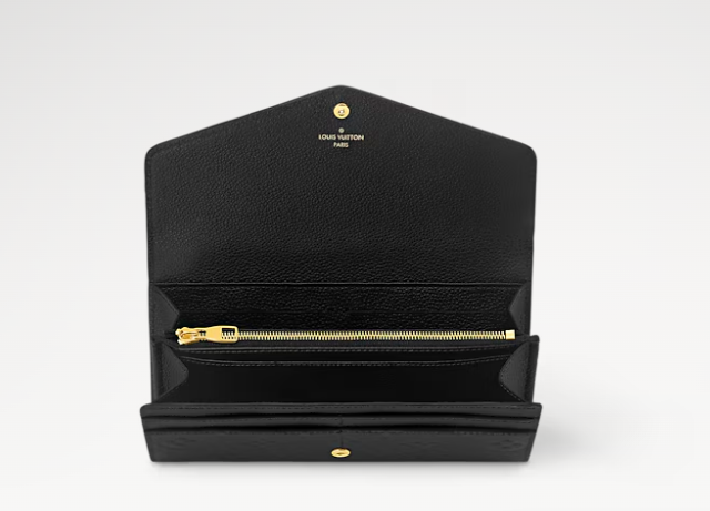 The Sarah wallet is crafted from Monogram Empreinte leather, embossed with Louis Vuitton’s iconic Monogram pattern. The wallet’s envelope-style flap opens to reveal a variety of practical features, including multiple credit-card slots and a zipped coin pocket.
