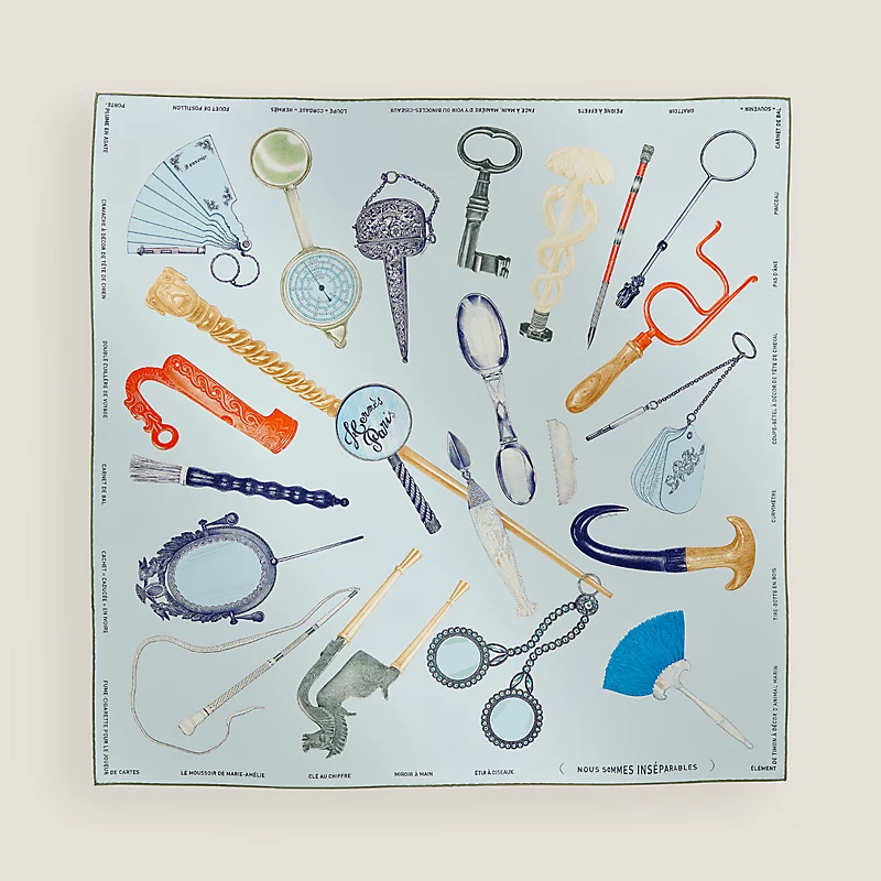 This iconic Hermès piece embodies the essence of powerful beauty and charismatic femininity. The 90 scarf symbolizes the boundless freedom of constantly renewed creation, unlimited emotion and the unique expression of a personal narrative waiting to be written.