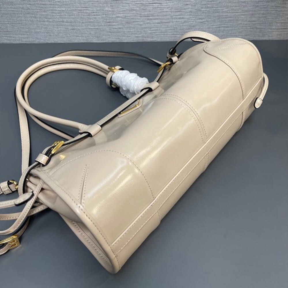 Nappa and nylon interior with center zipper compartment and zipper patch pocket