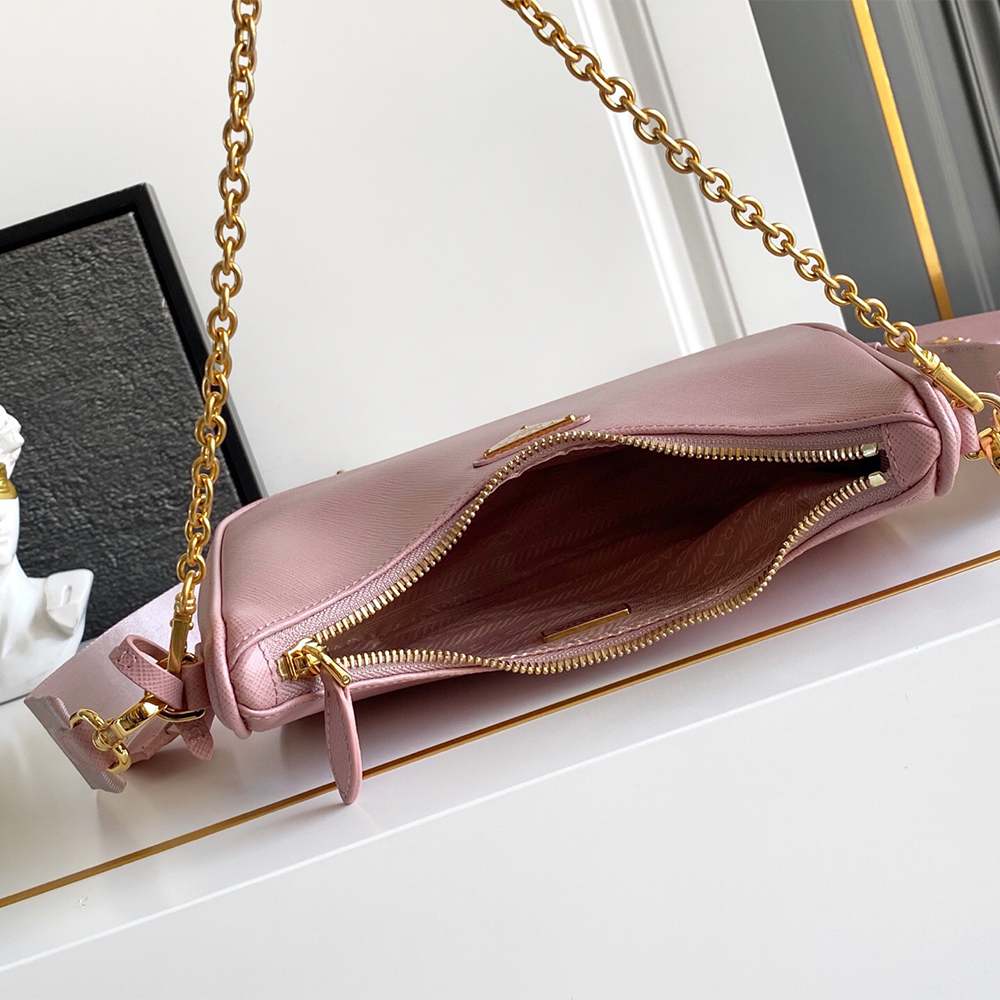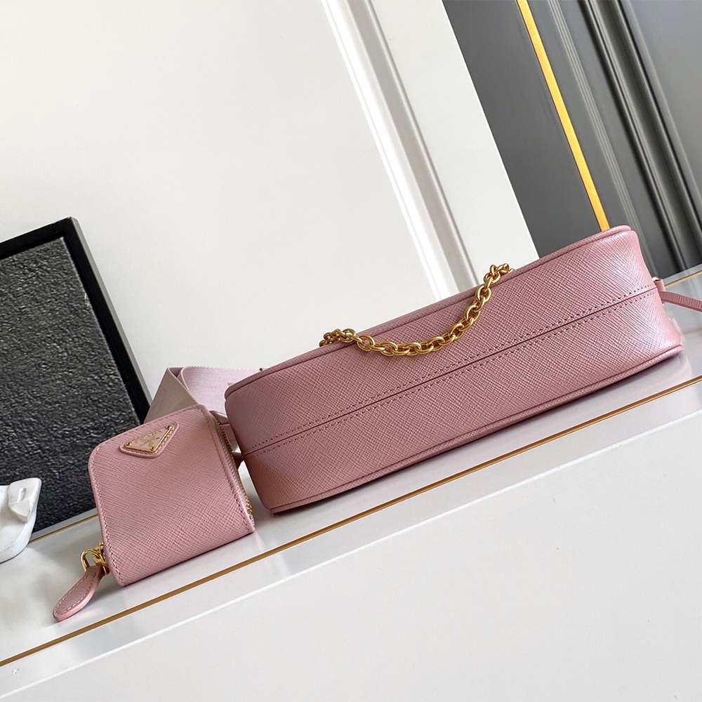 This bag can comfortably hold an iPhone 17 Pro Max, a small Prada wallet and other small items.