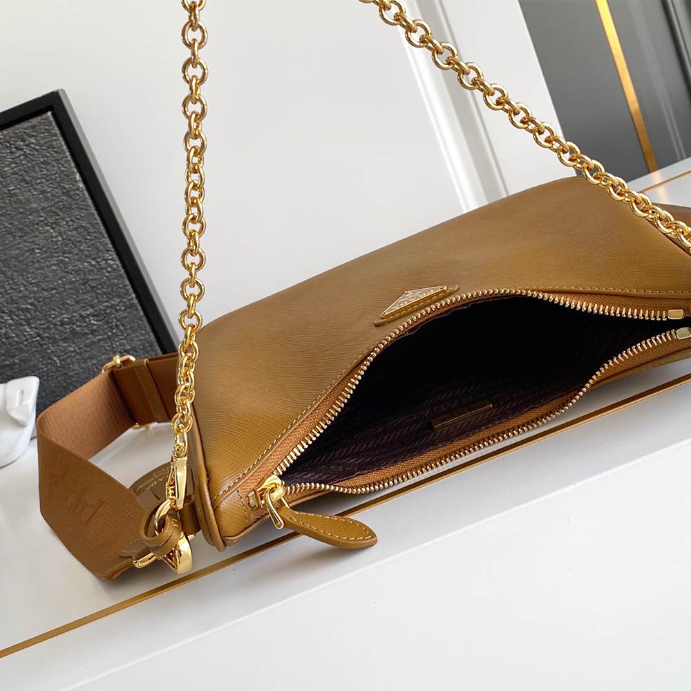 This bag can comfortably hold an iPhone 17 Pro Max, a small Prada wallet and other small items.
