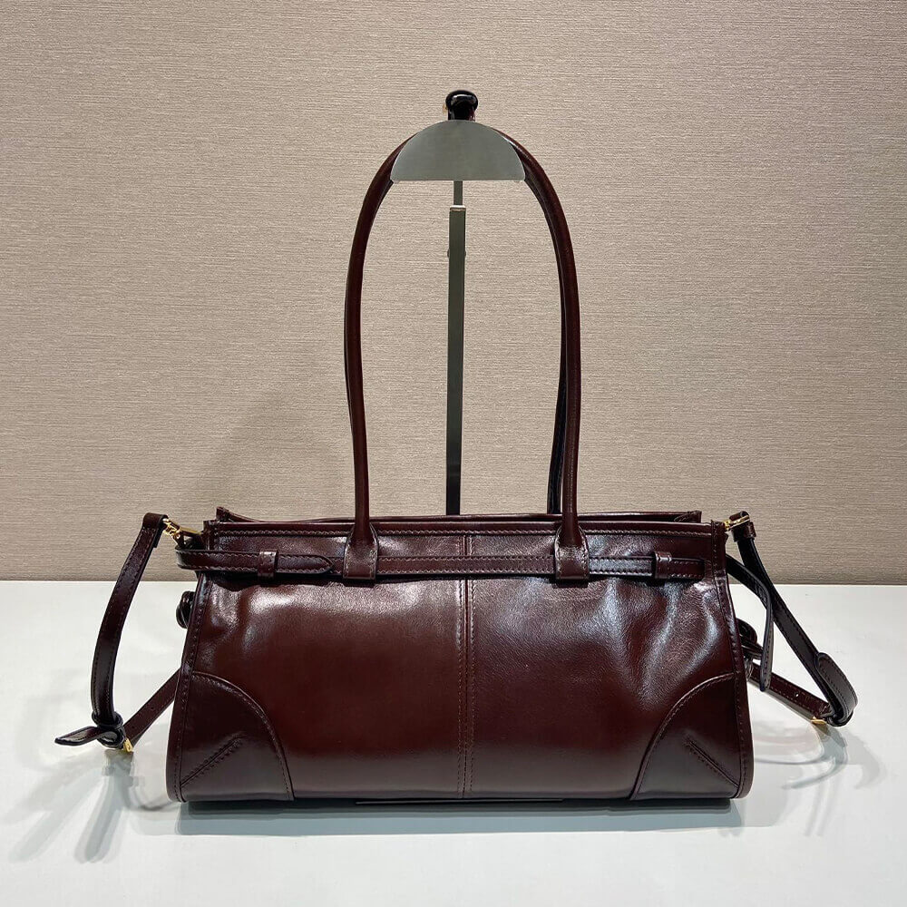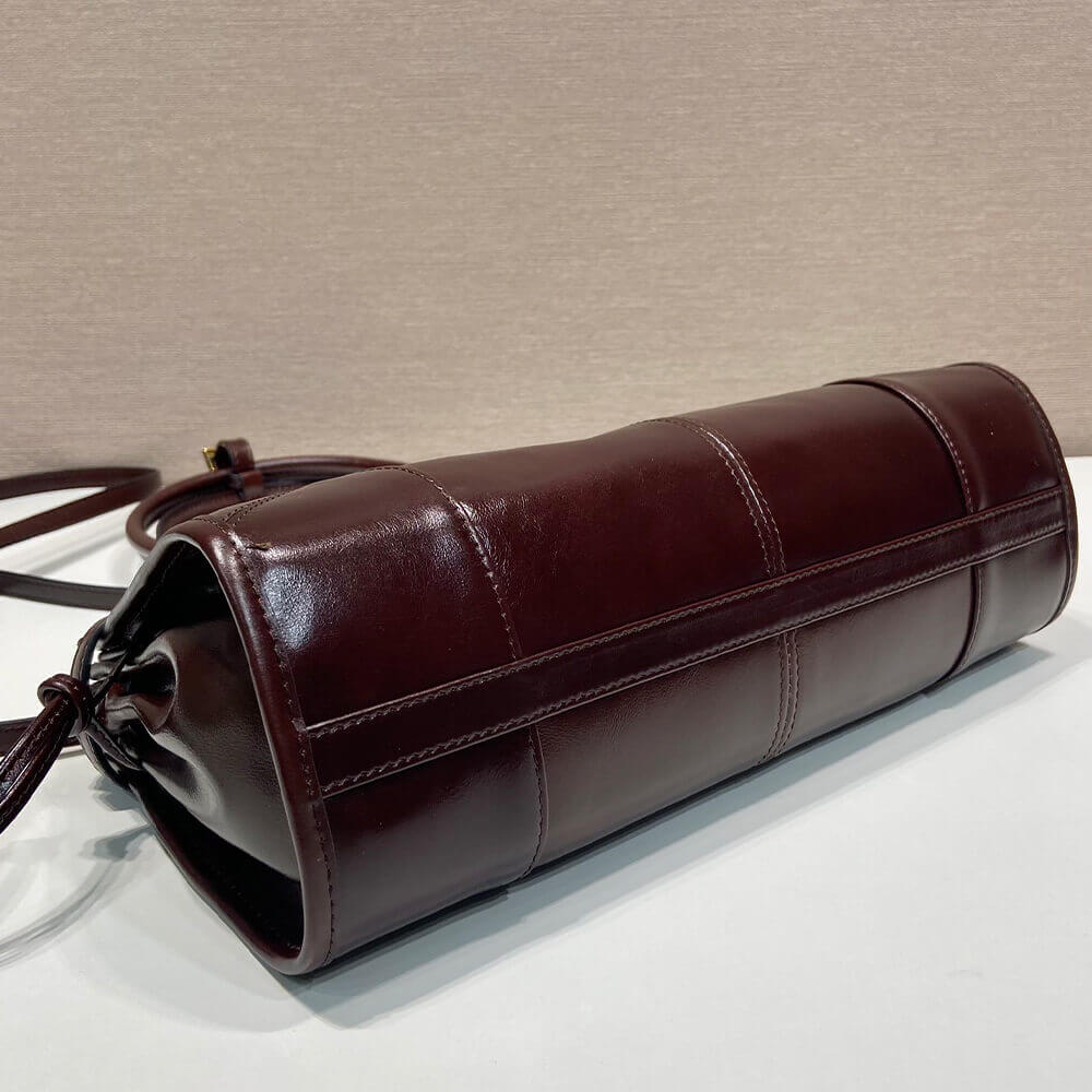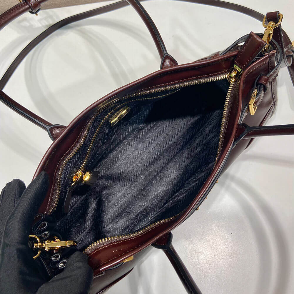 Nappa and nylon interior with center zipper compartment and zipper patch pocket