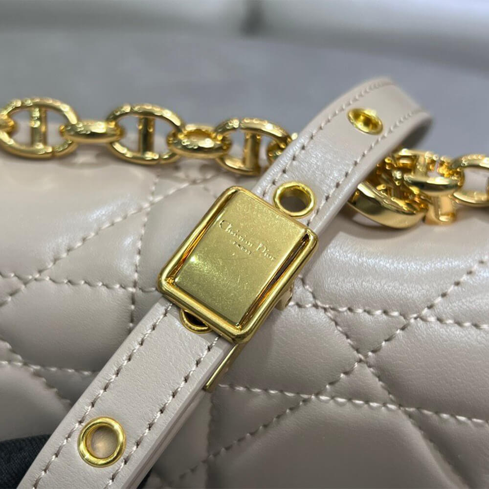 Adjustable, detachable CD chain link strap with Christian Dior Paris military-inspired buckle