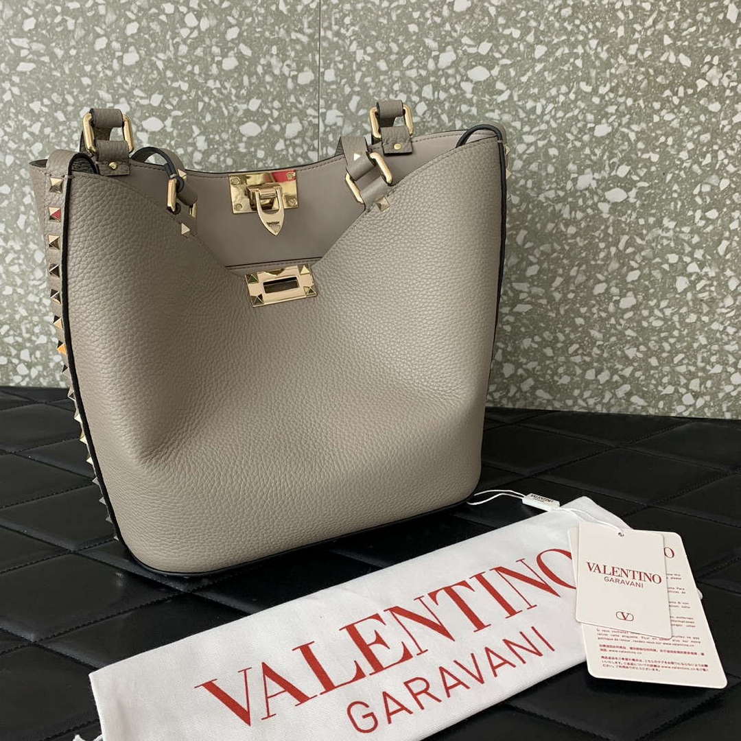 Valentino 0055 GARAVANI Rockstud Small Poudre Leather Tote Bag Gray