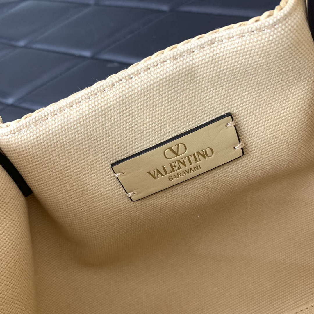 Valentino 0220s Shopping Summer Tote bag in Beige Lace-Effect Raffia Straw