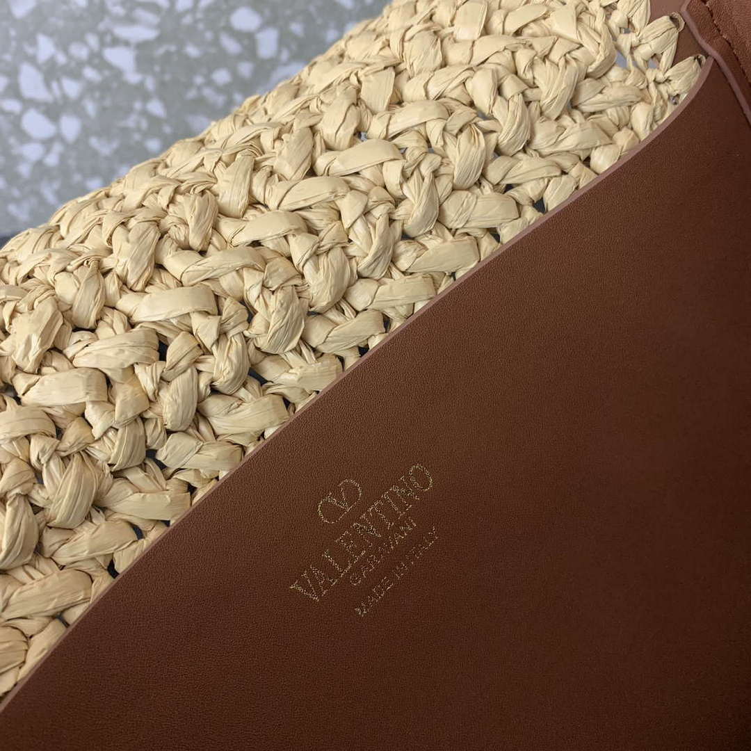 Valentino 0356 Garavani Rockstud VLOGO SIGNATURE Shoulder Bag Raffia