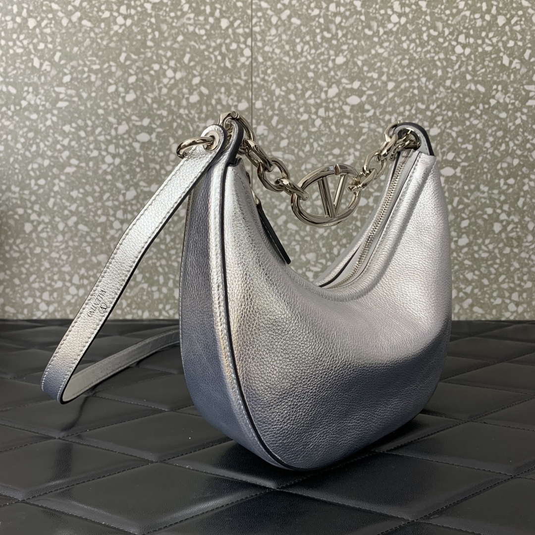 Valentino 6W2P0AK3SNP_I16 Vlogo Signature Mini Hobo Bag In Grainy Calfskin Silver