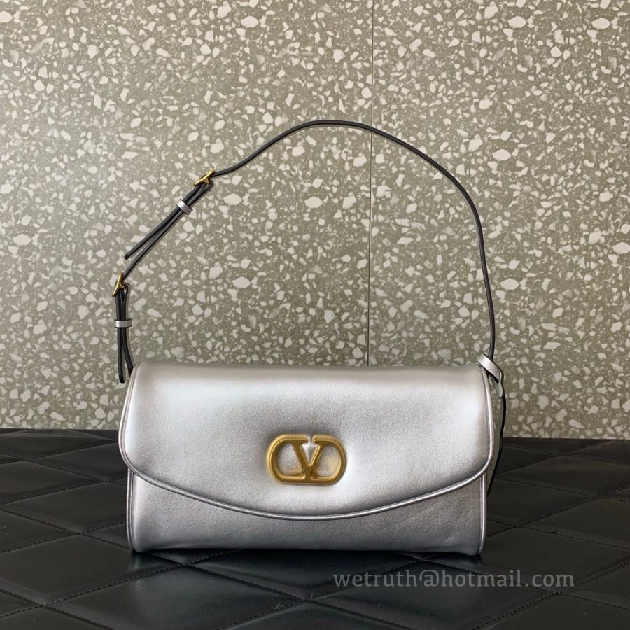 Valentino GARAVANI DEVAIN Small Lambskin Shoulder Bag 2031 Silver