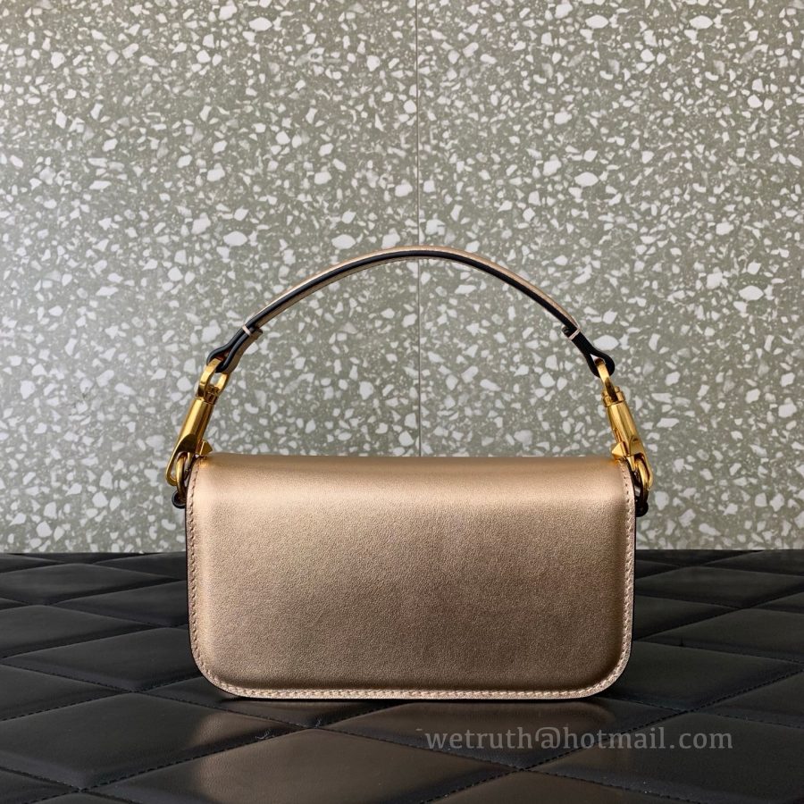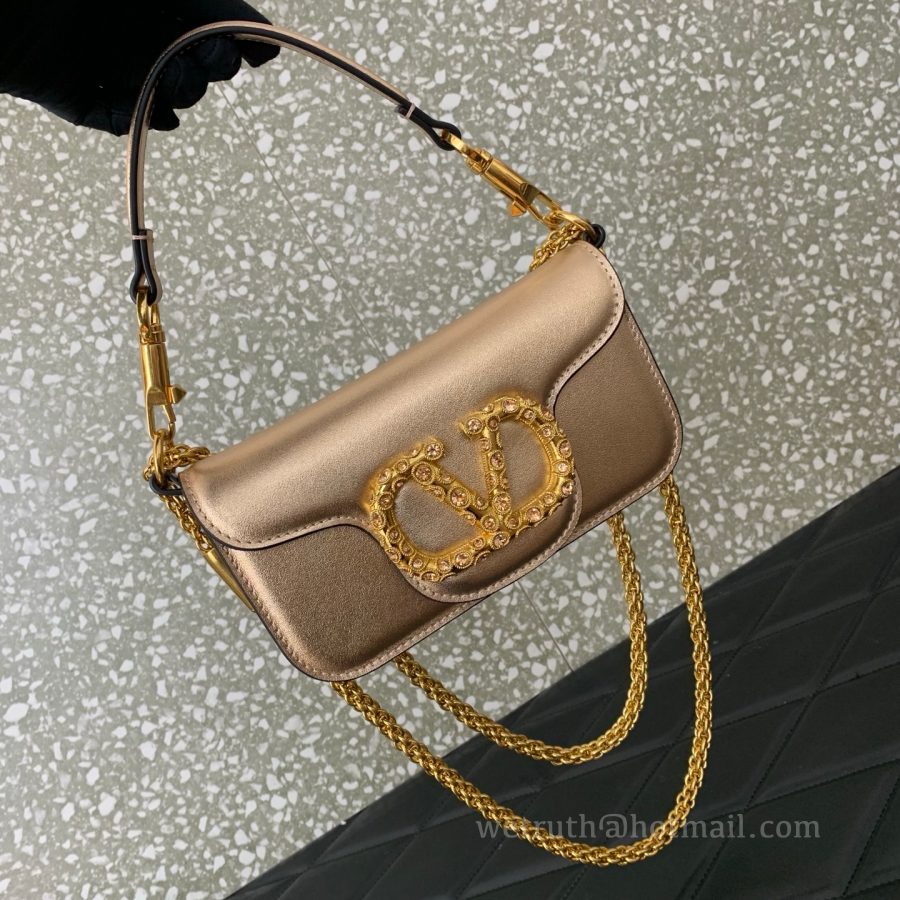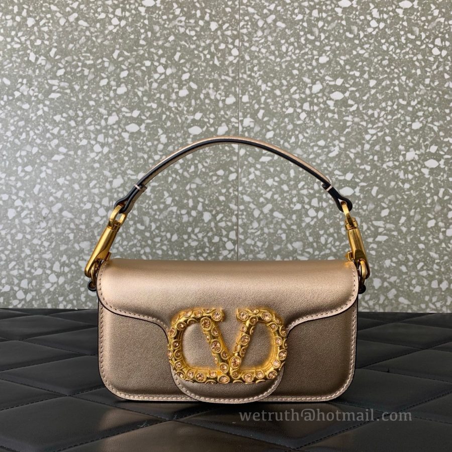 Valentino Garavani Mini Loco Calfskin Crystal-Embellished Handbag 5061 Gold