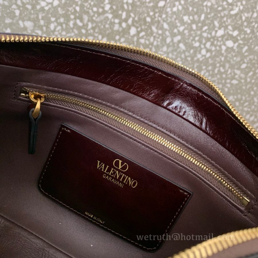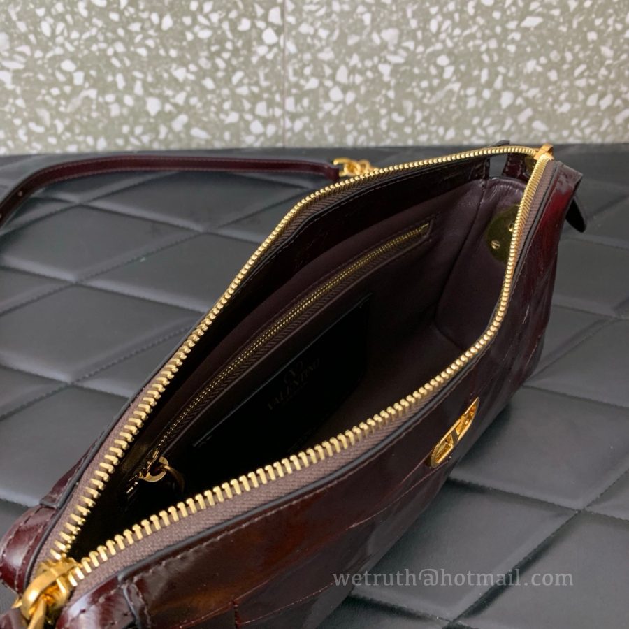 crafted from a combination of shiny and matte lambskin leather forming a V-shaped pattern. Adjustable shoulder strap design for both shoulder and crossbody wear.