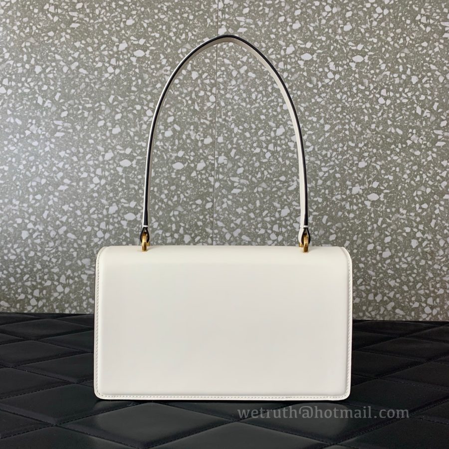 Valentino GARAVANI VAIN Shiny Calfskin Leather Top-Handle Bag 2017 White