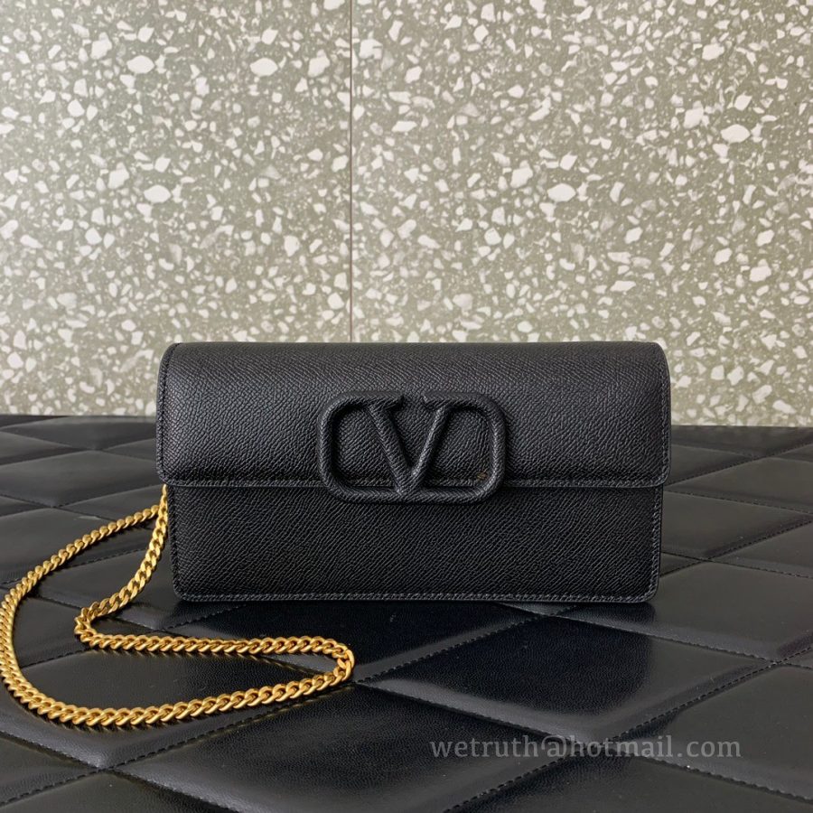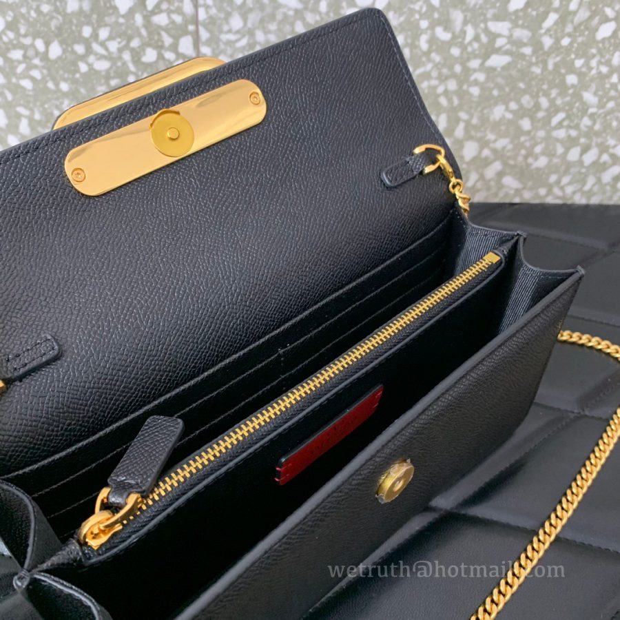 Valentino Leather Clutch Chain Shoulder Bag 061 Black