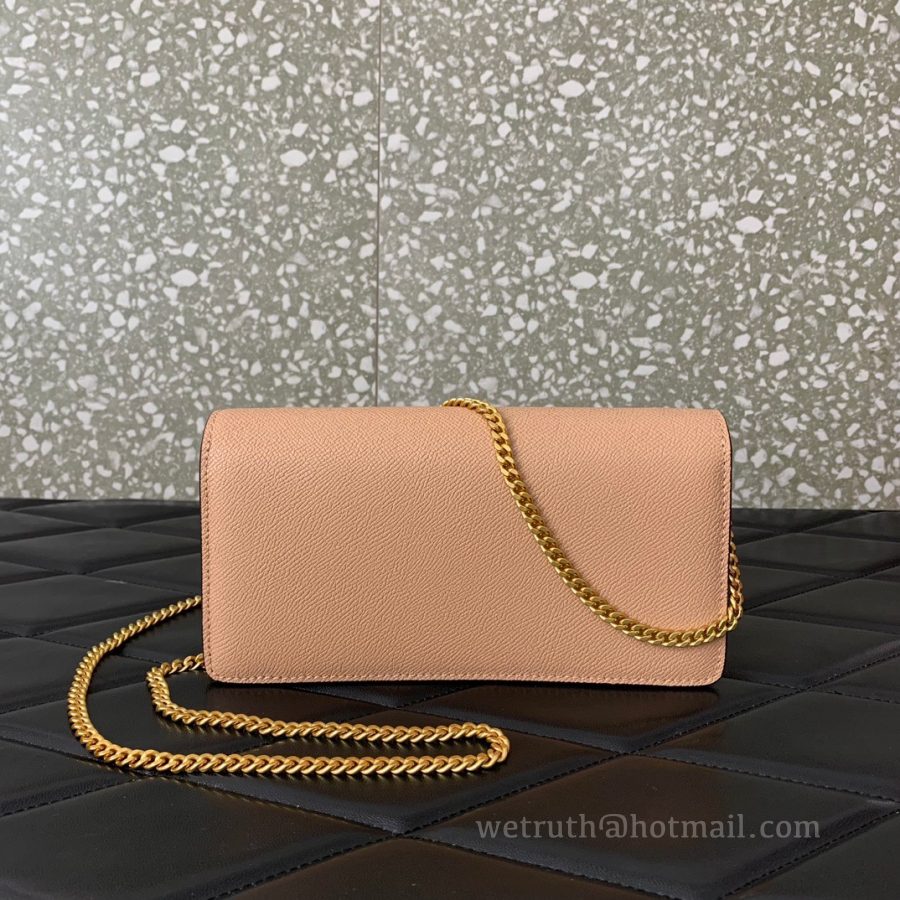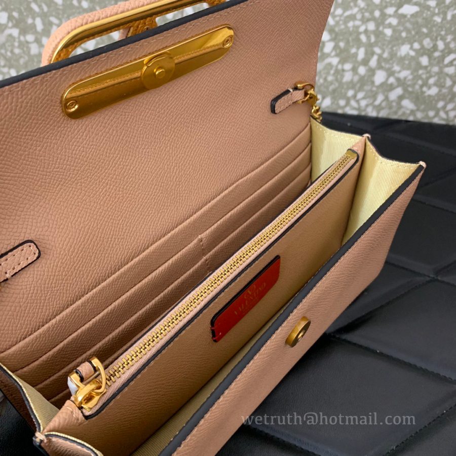 Valentino Leather Clutch Chain Shoulder Bag 061 Deep Beige