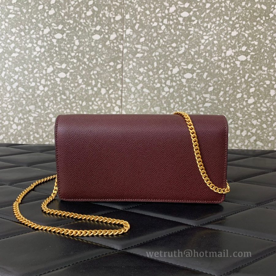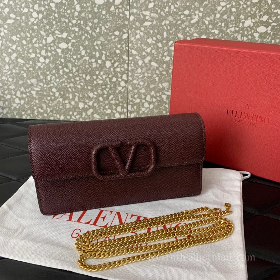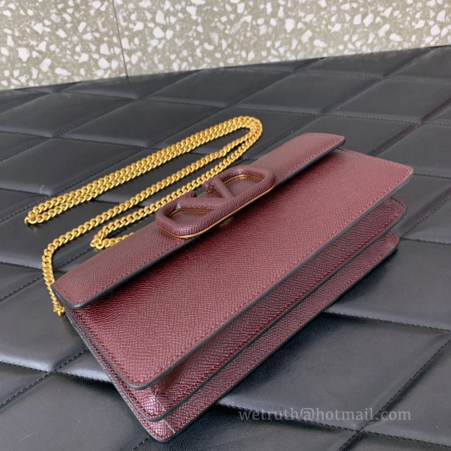Valentino Leather Clutch Chain Shoulder Bag 061 Wine